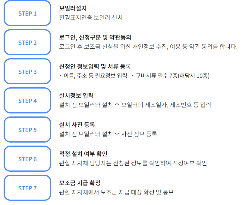 ‘가정용 보일러 인증 시스템(www.greenproduct.go.kr/boiler)’에서 온라인으로 신청하거나 관할 시군구 환경부서에 방문해 신청할 수 있다. 보일러 판매자의 대리 신청도 가능하다.