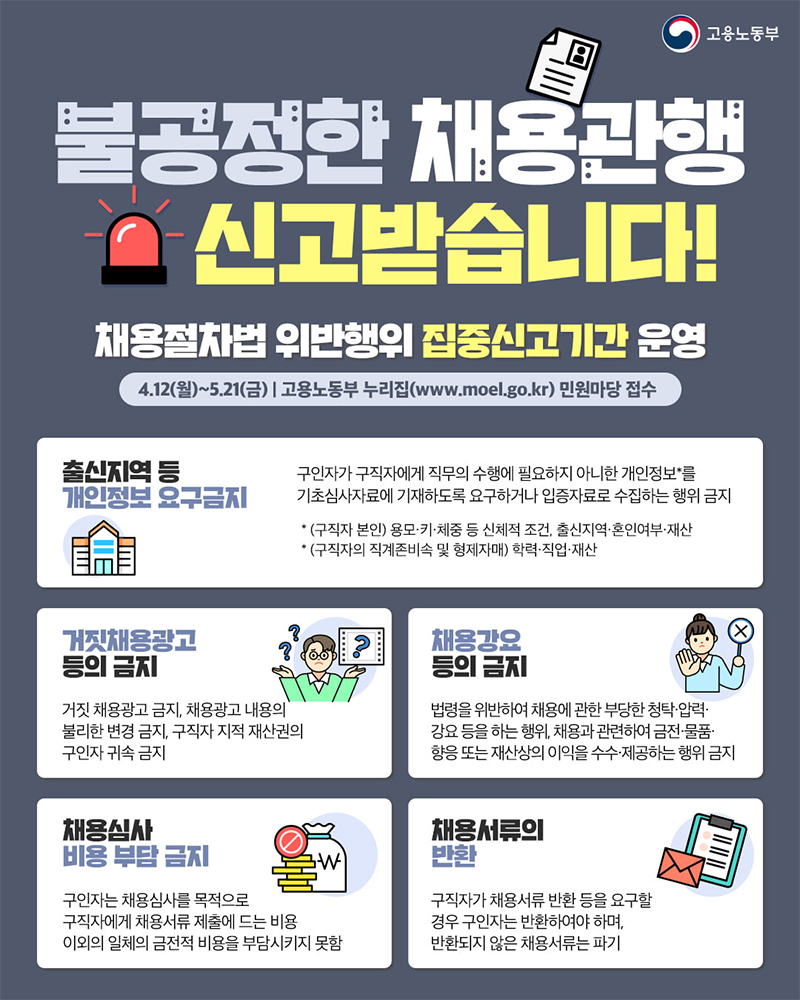 - 문의 : 고용노동부 상담센터(1350)